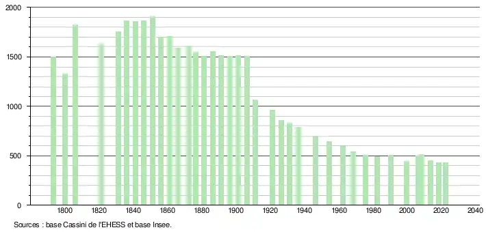 - ↑ Fiches Insee - Populations de référence de la commune pour les années 2006, 2007, 2008, 2009, 2010, 2011, 2012, 2013, 2014, 2015, 2016, 2017, 2018, 2019, 2020, 2021 et 2022.