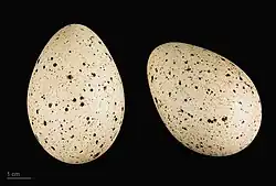 La femelle dépose entre quatre et sept œufs, gris pâle, tachetés de noir et de rouge. L'incubation assurée par le couple, dure une vingtaine de jours. Les oisillons sont nidifuges et quittent le nid 24h après l’éclosion. Mais ils restent sous la protection de leurs parents qui les nourrissent pendant un mois environ. Les oisillons terminent leur croissance au bout de soixante jours environ.