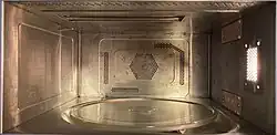 - le ventilateur, qui doit être assez puissant pour évacuer environ 40 % de l'énergie consommée et refroidir la cavité à la fin de la cuisson dans certains micro-ondes ;