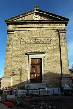 - Il s'agit d'un édifice religieux de rite catholique reconstruit au XIXe siècle. Celui-ci est en forme de croix latine avec une façade néo-classique, une nef unique à trois travées ainsi qu'un transept et chevet en hémicycle[28].