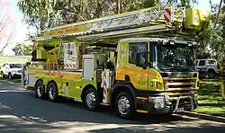 L'autre véhicule très utilisé en milieu urbain est la grande échelle, ou auto-échelle. Il s'agit d'une échelle escamotable motorisée portée par un véhicule, qui permet d'accéder aux grandes hauteurs pour effectuer des sauvetages (évacuations de personnes par une fenêtre, etc.) ou du travail en hauteur, acheminer des pompiers aux étages, et arroser le feu au plus près.