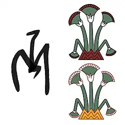 C'est un symbole de la Basse-Égypte , il peut être remplacé par l'hiéroglyphe M16
