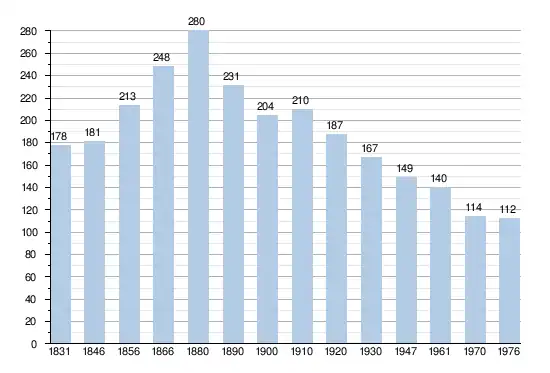 - Source: DGS, 1831 à 1970=recensements population, 1976= habitants au 31 décembre