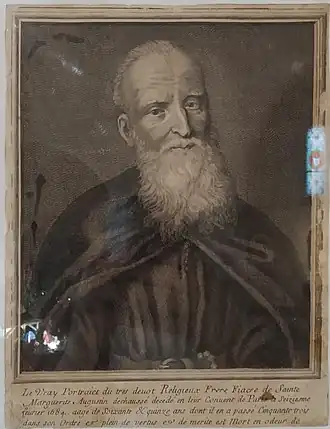 Denis Antheaume né à Marly-la-Ville le . Il entre dans l'ordre des Augustins déchaux comme frère convers sous le nom de frère Fiacre de Sainte-Marguerite, plus connu sous le nom de frère Fiacre[1].