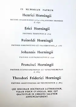 Son fils, l'historien Paul Guillaume Horning (1843-1927), est également pasteur dans cette même église.