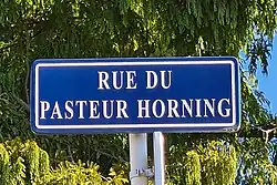 Une rue de Strasbourg, dans le quartier du Neuhof, perpétue sa mémoire, la rue du Pasteur-Horning[5], ainsi qu'un médaillon dans l'église protestante Saint-Pierre-le-Jeune de Strasbourg par le sculpteur Louis Stienne et un portrait par le peintre Léon Hornecker sur un pilier de la nef de cette église[6]. Émile Schweitzer a également dessiné son portrait (1882) et Charles Winter a réalisé plusieurs photographies[7].