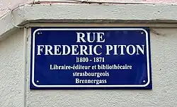 - ↑ Maurice Moszberger (dir.), « Frédéric-Piton (rue) », in Dictionnaire historique des rues de Strasbourg, Le Verger, Barr, 2012 (nouvelle éd. révisée), p. 95 (ISBN 9782845741393)