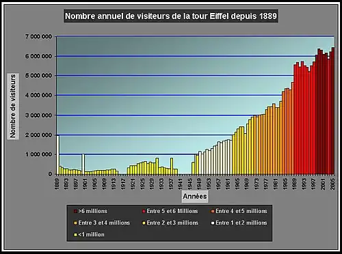 | Nombre de visiteurs annuels, de 1889 à nos jours | |||||||||||||