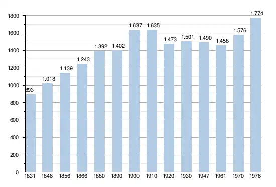 - Sources : INS, Rem. : 1831 jusqu'en 1970 = recensements, 1976 = nombre d'habitants au 31 décembre.