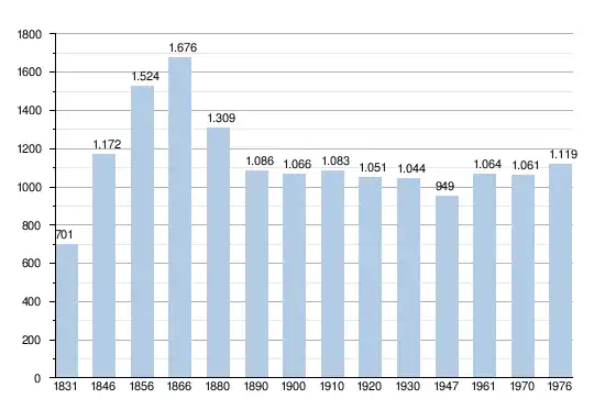 Source: DGS, 1831 à 1970=recensements population, 1976= habitants au 31 décembre
