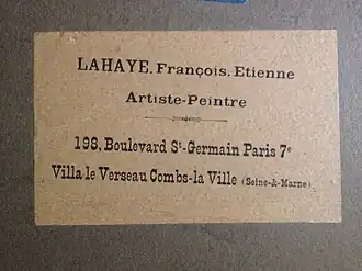 François-Étienne Lahaye est né à Combs-la-Ville (Seine-et-Marne) en 1878. La condition aisée de ses parents, dont la famille compta plusieurs maires à Combs-la-Ville[2] et dans la commune voisine de Quincy-Sous-Sénart[3], semble avoir été déterminante dans sa carrière, lui permettant de voyager et d'être à l'abri du souci de vivre de son art[4]. Combs-la-ville étant située à équidistance de Paris et de Barbizon, on peut supposer que cette situation géographique favorisa la vocation du jeune Lahaye pour la peinture. Les liens entre les groupes de Barbizon et de Crozant[5] durent aussi être à l'origine de sa rencontre avec Léon Detroy[6], membre de l'École de Crozant, dont il devint l'élève. C'est d'ailleurs à lui que la critique compara ses premières œuvres[7]. Celui que l'on nommait l'ermite de Gargilesse peignait alors dans une veine néo-impressionniste que Lahaye ne devait finalement pas suivre, préférant aux touches fortement individualisées de son mentor une approche plus fondue de la couleur et de la lumière, ainsi qu'une présence plus forte du dessin.