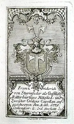 - (de) Cet article est partiellement ou en totalité issu de l’article de Wikipédia en allemand intitulé « Franz Friedrich von Sturmfeder » (voir la liste des auteurs).