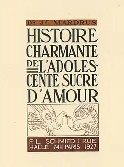 - Joseph-Charles Mardrus Histoire charmante de l'adolescente Sucre d'amour, Paris, F.-L. Schmied, 1927. Tirage unique à 25 exemplaires sur japon, signés par Schmied.