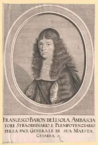 Le baron François-Paul de Lisola[note 1] est un homme d'État, habile diplomate qui s'est mis au service des Habsbourg et a rédigé des ouvrages dénonçant la politique des rois de France, né en 1613 à Salins dans le comté de Bourgogne et mort Autriche à Vienne en 1674.