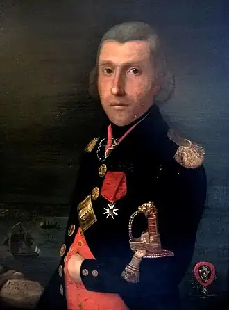 Lieutenant de Vaisseau depuis 1786[5], il était employé comme major de la station des Iles du Vent. En 1789, il parvint à sauver et à mettre en sûreté à bord du vaisseau l'Illustre, plusieurs habitants de la Martinique dont les factieux voulaient s'emparer[2].