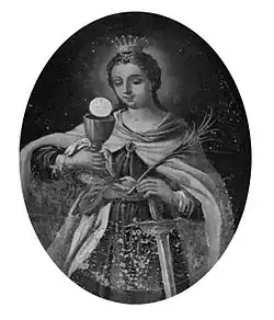 Près de Colmar, dans l’église paroissiale Saint-Nicolas de Widensolen, reconstruite dans la seconde moitié du XIXe siècle, deux autels latéraux face à la nef sont ornés chacun d’un grand tableau rectangulaire d’environ 1,80 m de haut et d’un tableau ovale de couronnement d’environ 1 m de haut (représentant sainte Marguerite à gauche, et à droite sainte Barbe, qui a pour attribut traditionnel le ciboire où sont conservées les hosties consacrées). Sous le tableau ovale de sainte Marguerite,