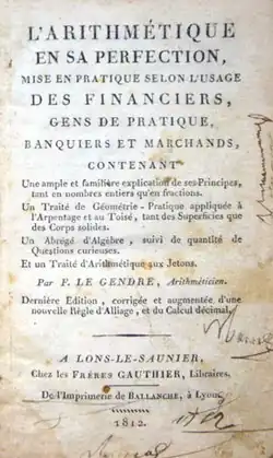 - ↑ L'Arithmétique en sa perfection, édition de 1812 chez les frères Gauthier, à lire en ligne ici :