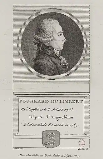 François Pougeard du Limbert ou Dulimbert est né le 3 juillet 1753 à Confolens (Charente), fils de Jean-Baptiste Pougeard, sieur du Limbert, sénéchal de la ville et comté de Confolens, et de Marie-Radegonde Babaud de Frégeville. Il est mort faubourg des Arènes à Limoges, le 19 mars 1837, et fut inhumé au cimetière de Saint-Maurice-des-Lions en Charente.