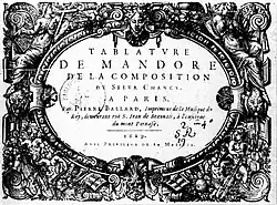 - ↑ Mersenne publie aussi f. 94v une allemande extraite de la Tablature de mandore de 1629.