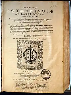 François de Rosières (1534-1607), originaire de Bar-le-Duc, fut archidiacre et chanoine de Toul, vicaire épiscopal en 1560, protonotaire, conseiller et maître de requêtes du cardinal Charles de Lorraine à Reims en 1570, aumônier de la cathédrale de Metz en 1580, conseiller au conseil privé du duc de Lorraine Charles III en 1582. La publication de ses Stemmatum Lotharingiae ac Barri ducum tomi septem, où il discrédite la famille royale, lui valut un retentissant procès en France entre décembre 1582 et avril 1583[1]