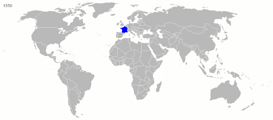 La France est également composée de nombreux territoires situés en dehors du continent européen, couramment appelés France d'outre-mer, qui lui permettent d'être présente dans tous les océans du monde sauf l'océan Arctique.