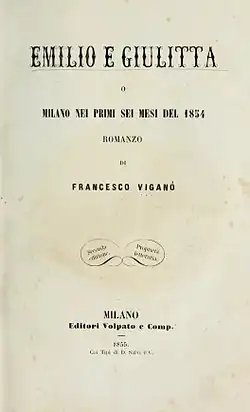 - Valassina o Emilio e Giulitta, 1854; 2ª ed.: Emilio e Giulitta o Milano nei primi sei mesi del 1854, 1855