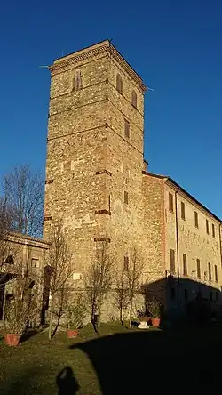 - ↑ Inscription sur le stèle: QUI TRATTI IN CATENE NEL 1321 SPEGNEVA LA FAME FRANCESCO PICO E I FIGLIUOLI - NEL 1328 LA PROLE E I NEPOTI DI PASSERINO BONACOLSI - DALL'ORRIDA MUDA CHE NE HA RISPETTATO I CEPPI E LE OSSA RIECHEGGI CON VINDICE PIETÀ PER LE VITTIME UN GRIDO DI ESECRAZIONE AI TIRANNI.