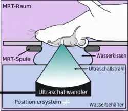 Les ultrasons peuvent être focalisés sur n'importe quel domaine du cerveau. C'est ainsi que l'on peut ouvrir la barrière hémato-encéphalique sélectivement sur des régions délimitées du cerveau. Les médicaments administrés pénétreront alors sur la zone ainsi ciblée[138]. On peut suivre le ciblage des zones par une IRM simultanée : il suffit d'administrer un produit de contraste IRM, comme du gadolinium convenablement chélaté, qui pénètre dans le cerveau à travers les parties de la barrière hémato-encéphalique ouvertes. Ces parties deviennent alors visibles en IRM. Les produits de contraste ne sont pas en mesure de franchir la barrière aux endroits où elle n'est pas ouverte.