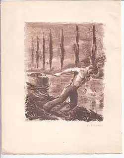- 1950 : Le peintre regagne Paris et trouve son atelier réquisitionné. Il continue pourtant à peindre. Illustre la Bretagne mienne par Jean Olibo.
