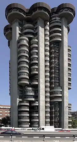 - 1971-1978 : tour de la Banque de Bilbao, édifice de 107 m présentant des façades d'acier et de verre, situé dans le complexe financier et commercial AZCA de Madrid ;
