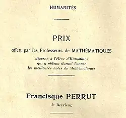 Administrateur de l’ensemble des manifestations culturelles menées par l’établissement, kermesse, pièces de théâtre, il saura faire partager sa passion pour la littérature, la comédie et l’histoire à ses élèves. Il réinstaurera également « Les nouvelles de Mongré », petit journal du collège oublié depuis la guerre qu’il rédigera en grande partie. Francisque Perrut fut aussi professeur au lycée Notre-Dame en classe de terminale lorsque l’établissement n’accueillait que des filles et que Mongré n’était pas encore ouvert à la mixité.