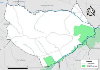 L’inventaire des zones naturelles d'intérêt écologique, faunistique et floristique (ZNIEFF) a pour objectif de réaliser une couverture des zones les plus intéressantes sur le plan écologique, essentiellement dans la perspective d’améliorer la connaissance du patrimoine naturel national et de fournir aux différents décideurs un outil d’aide à la prise en compte de l’environnement dans l’aménagement du territoire. Une ZNIEFF de type 1[Note 2] est recensée sur la commune[21] : les « milieux humides et prairies de fauche de la vallée de la Louge au niveau de la confluence Nère-Louge » (305 ha), couvrant 8 communes du département[22].