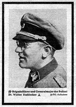 Franz Walter Stahlecker ( – ), criminel de guerre nazi, était le premier commandant de l'Einsatzgruppe A, SS-Führer et chef de la police du Reichskommissariat Ostland. Stahlecker a commandé jusqu'à sa mort le plus meurtrier des quatre Einsatzgruppen. Cette section était active dans les pays baltes et dans le nord de la Russie soviétique, acteur de la Shoah par balles. Il a ensuite été remplacé par Heinz Jost.
