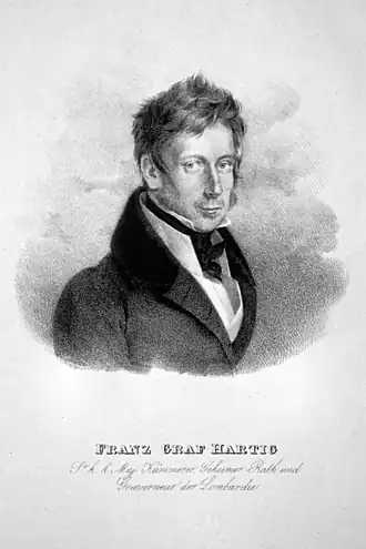 À 36 ans, Hartig reçoit le gouvernement de la Marche de Styrie en 1825, il y reste jusqu'en 1830, quand il est nommé gouverneur de Lombardie sous le Royaume lombard-vénitien. Il gère la Lombardie avec sagesse, et il a une grande popularité notamment à Milan.