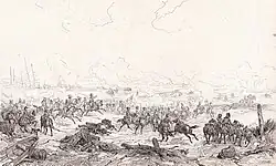 Le 18 avril 1797, les 38 000 soldats français de l'armée de Sambre-et-Meuse, commandés par le général Hoche, attaquèrent par surprise les 21 000 hommes de Werneck lors de la bataille de Neuwied[8]. S'étant aperçu la veille qu'une division française sous les ordres du général Championnet menaçait l'aile droite de son dispositif, Werneck avait prélevé des troupes sur son flanc gauche, dirigé par le général Kray, afin de renforcer sa droite. Aussi, lorsque les divisions Grenier et Lefebvre commencèrent à franchir le Rhin à 3 h du matin le 18 avril, le commandant en chef de l'armée autrichienne fut pris au dépourvu et dut rappeler en catastrophe les hommes de Kray sur son aile gauche. Celle-ci fut culbutée par Lefebvre tandis que Grenier parvint non sans difficulté à se rendre maître des redoutes érigées par Kray à Heddersdorf[9]. Après un combat acharné, les troupes autrichiennes furent contraintes d'abandonner le terrain, perdant 1 000 tués ou blessés, 3 000 prisonniers, 24 pièces d'artillerie, 60 wagons et cinq drapeaux alors que les pertes des Français ne se montaient qu'à environ 2 000 hommes[8].