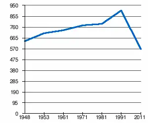 - 1 2 (sq) « Évolution de la population 1948-2011 », sur pop-stat.mashke.org (consulté le ).