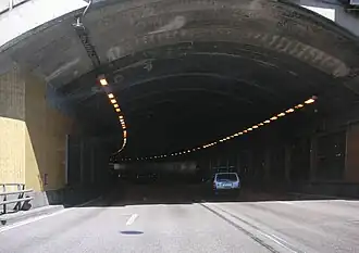 Le tunnel comporte quatre voies dans chaque direction et se compose de deux tubes séparés de 220 mètres de long et dont 160 mètres sont un tunnel taillé dans la roche et 60 mètres sont construits en béton dans une tranchée rocheuse ouverte. Le tunnel rocheux a été doté d'arcs renforcés en béton et la roche entre les arcs a été enduite par pulvérisation. En raison de sa longueur limitée, aucune ventilation n'est nécessaire. L'entrepreneur pour la partie en béton était Kasper Höglund AB.