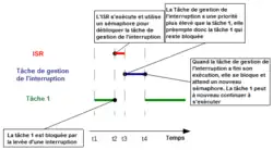 Afin de choisir la tâche à exécuter, l'ordonnanceur doit lui-même s'exécuter et préempter la tâche en état d'exécution. Afin d'assurer le réveil de l'ordonnanceur, FreeRTOS définit une interruption périodique nommé la "tick interrupt"[9]. Cette interruption s'exécute infiniment selon une certaine fréquence qui est définie dans le fichier FreeRTOSConfig.h par la constante :