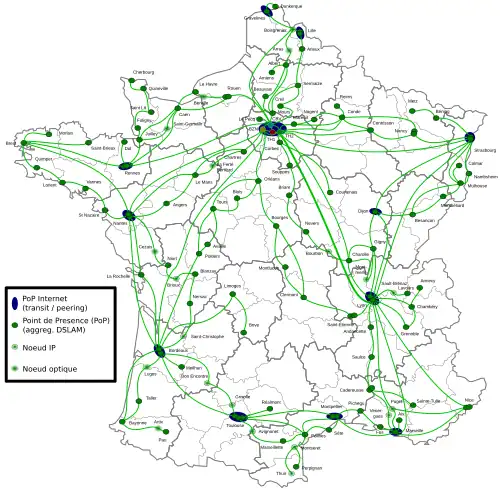 Free possède le 3e réseau privé (DWDM classique) en termes de couverture nationale et de capacité (58 300 km de fibre optique en décembre 2010). Le réseau de Free est désormais international. Il est présent :