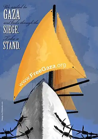 Le Free Gaza Mouvement a, depuis août 2008, pris la mer depuis Chypre pour la bande de Gaza. Accompagné de témoins internationaux, l'objectif affiché du mouvement est de fournir des biens humanitaires à Gaza. Ils dénoncent et condamnent l'embargo de la Bande de Gaza opéré par Israël et l'Égypte, et cherchent à alerter la communauté internationale. Leurs bateaux sont les premiers bateaux internationaux à voyager vers Gaza depuis 1967[réf. nécessaire]. L'ONU rend public le rapport de sa commission d'enquête sur l'abordage de la flottille a rendu public ses conclusions, Rapport Palmer présentant les responsabilités des différentes parties : d'une part le blocus maritime est estimé légal, Israël étant donc justifié à intercepter la flottille ainsi qu'à faire usage de la force « à des fins de légitime défense » dès lors que les militaires « ont été accueillis par une résistance organisée et violente d'un groupe de passagers ».