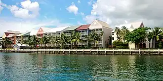 ![]() ![]() ![]() De haut en bas : vu sur les maisons du quartier Bell Chanel Bay, le Port Lucaya Marina, le marché du port. |