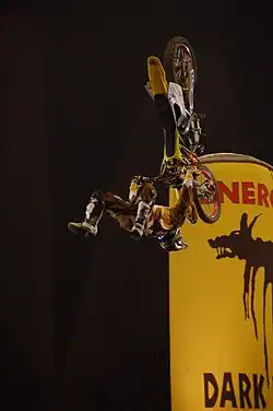 Travis Pastrana a été le premier à faire cette figure en compétition aux X-Games en 2006. Très peu de pilotes maitrisent cette figure qui consiste à faire une double rotation arrière.