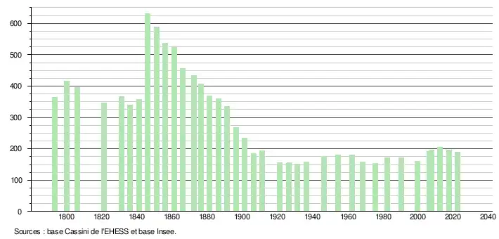 (Sources : Ldh/EHESS/Cassini jusqu'en 1999[19] puis Insee à partir de 2006[25].)