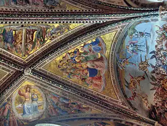 Voûtes et parois de la haute chapelle San Brizio de la Cathédrale d'Orvieto (1447-1449) (terminées par Luca Signorelli en 1499-1504) :