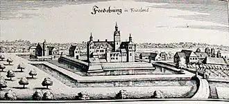 Au cours des années 1514–1517, la Frise refusant de se soumettre au duc Georges de Saxe, le château de Friedeburg tint bon malgré le siège par des armées de Brunswick et de Saxe, mais le gouverneur de la place, Rippersbusch rendit les clefs de la ville en échange de la liberté de ses hommes. Le comte Edzard le Grand parvint pourtant à reconquérir le château[10] le 27 septembre 1517.