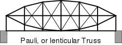 Friedrich August Pauli a breveté une poutre en treillis lenticulaire utilisée sur le pont de Großhesselohe en 1857. Isambard Kingdom Brunel a construit un pont avec une poutre lenticulaire sur le Royal Albert Bridge, conçu en 1855 en s'inspirant du High Level Bridge de Robert Stephenson et inauguré en 1859. Pauli avait déjà utilisé une forme primitive de ce type de poutre en 1853 pour construire un pont sur la Günz, à Guntzbourg, mais sans rencontrer de succès car la membrure supérieure avait cédé et avait dû être renforcée. La solution brevetée permettait d'avoir des contraintes maximales égales dans les membrures supérieure et inférieure. Une poutre lenticulaire avait déjà été développée dans les années 1830 par Georg Ludwig Friedrich Laves. Si ce système de poutre en treillis a été utilisé couramment en Bavière, dans les autres pays les ingénieurs ont préféré utiliser des poutres bow-string plus simples à réaliser[1].