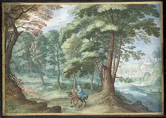 - Paysage avec Tobie et l'ange Raphaël, 1625, gouache sur parchemin.