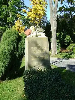 Sa tombe à Hildburghausen est orné d’un sphinx ailé et, sous son, la représentation symbolique du dieu soleil égyptien.
