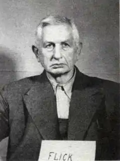 Vers la fin de la Seconde Guerre mondiale, à la veille de la défaite allemande, Flick céda la majorité des actions à ses fils Otto-Ernst et Friedrich Karl. Il a déplacé le siège social vers l'ouest, à Düsseldorf, et a ordonné de détruire des documents à charge. Le , il fut arrêté par les forces occupantes américaines dans son manoir à Wackersberg en Bavière. Accusé de crimes de guerre au procès Flick, il a osé se défendre en déclarant qu'il aurait été victime du nazisme. Le , il est condamné tardivement à seulement sept ans de prison à Landsberg. Mais il est relâché par le haut commissaire allié John McCloy, après seulement trois ans de prison.