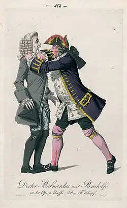 - Doctor Balnardus und Pandolfo in der Opera Buffa „Der Tollkopf“, Buchillustration nach einer Vorlage von Heinrich Anton Dähling, um 1805